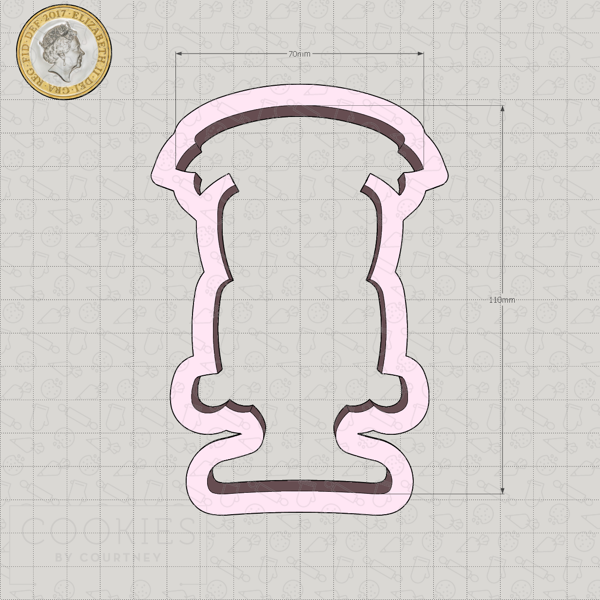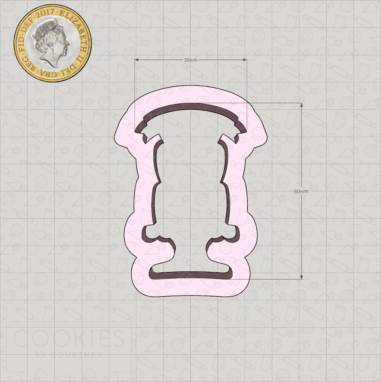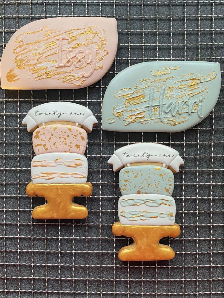 Perfect for birthday cookie sets, or anniversaries or even baby showers! This cake cutter was designed for us by Murielle at Maman’s Sweet Treats and the sketch and decorated cookies were made by Murielle.